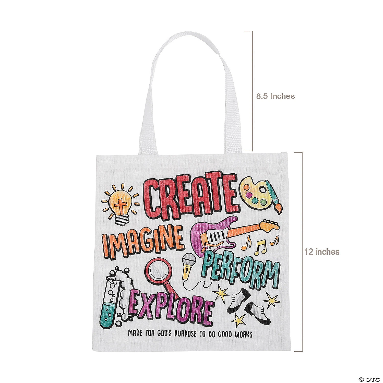 Letβs get creative! These cute tote bags are made of durable canvas material and are ready to be colored β a fantastic Studio VBS craft that is simple and useful. Kids can use their completed tote bags to transport completed crafts home every day. These reusable tote bags can be used again and again, each time reminding kids of the lessons they learned in Studio VBS. Canvas. 12″ x 12″ with 8 1/2″ handles. Β© OTCβ’ Fun Crafts: With some imagination, this tote bag could be your next creative project. Perfect as a Studio VBS craft, this tote bag just needs your personal touch to come to colorful life! β’ Eco-friendly: Save a tree and go green with this eco-friendly tote bag that is perfect for carrying books, folders and small art supplies. Mother Earth is sure to appreciate the gesture, so go ahead and gift this tote bag to your friends and family while youβre at it! β’ Durable Quality: Made of cavas, this sturdy tote bag wonβt let you or your accessories down. Plus, you can easily store the reusable bag away until you need it again