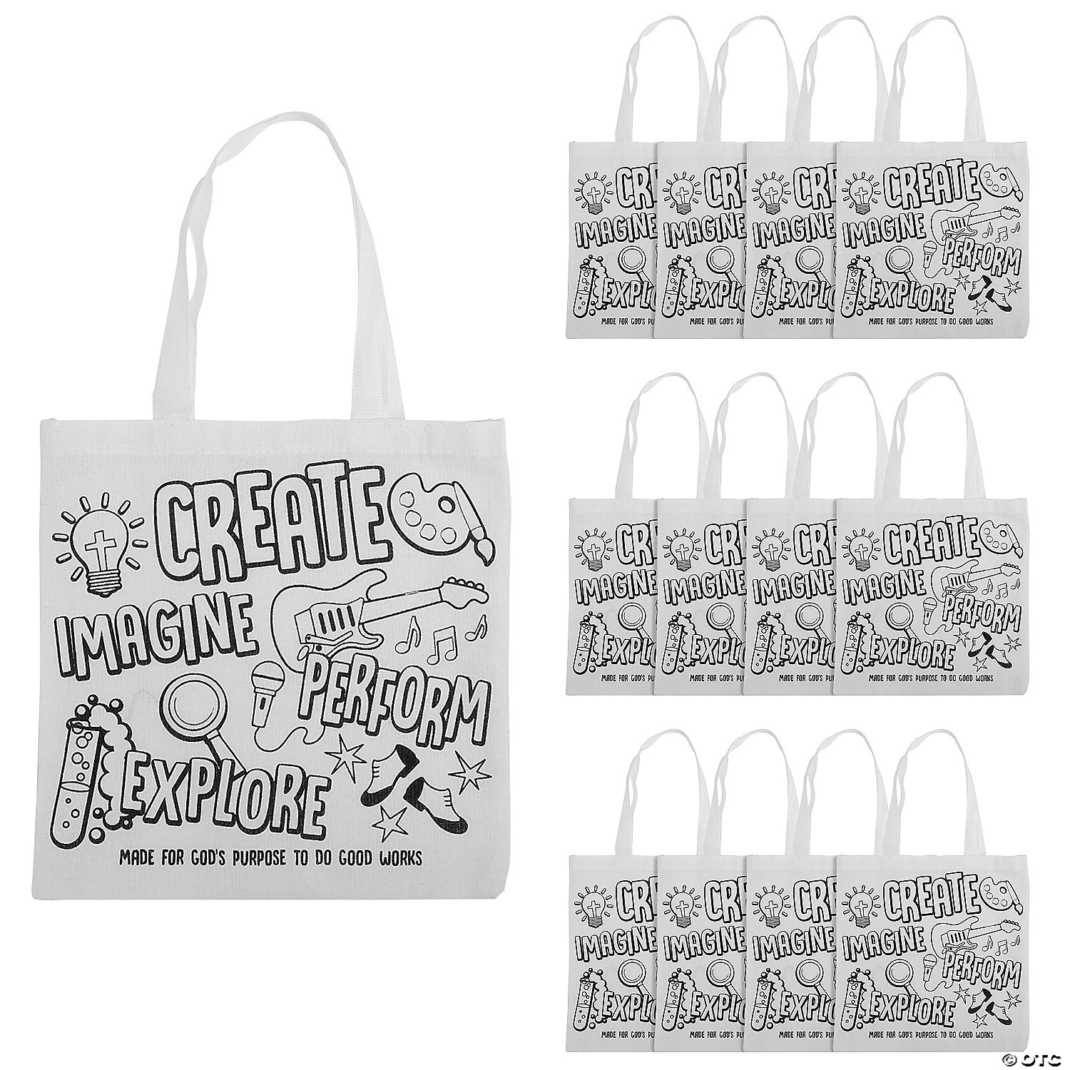New π 12″ x 12″ Medium Color Your Own Studio VBS Tote Bags – 12 Pc. π