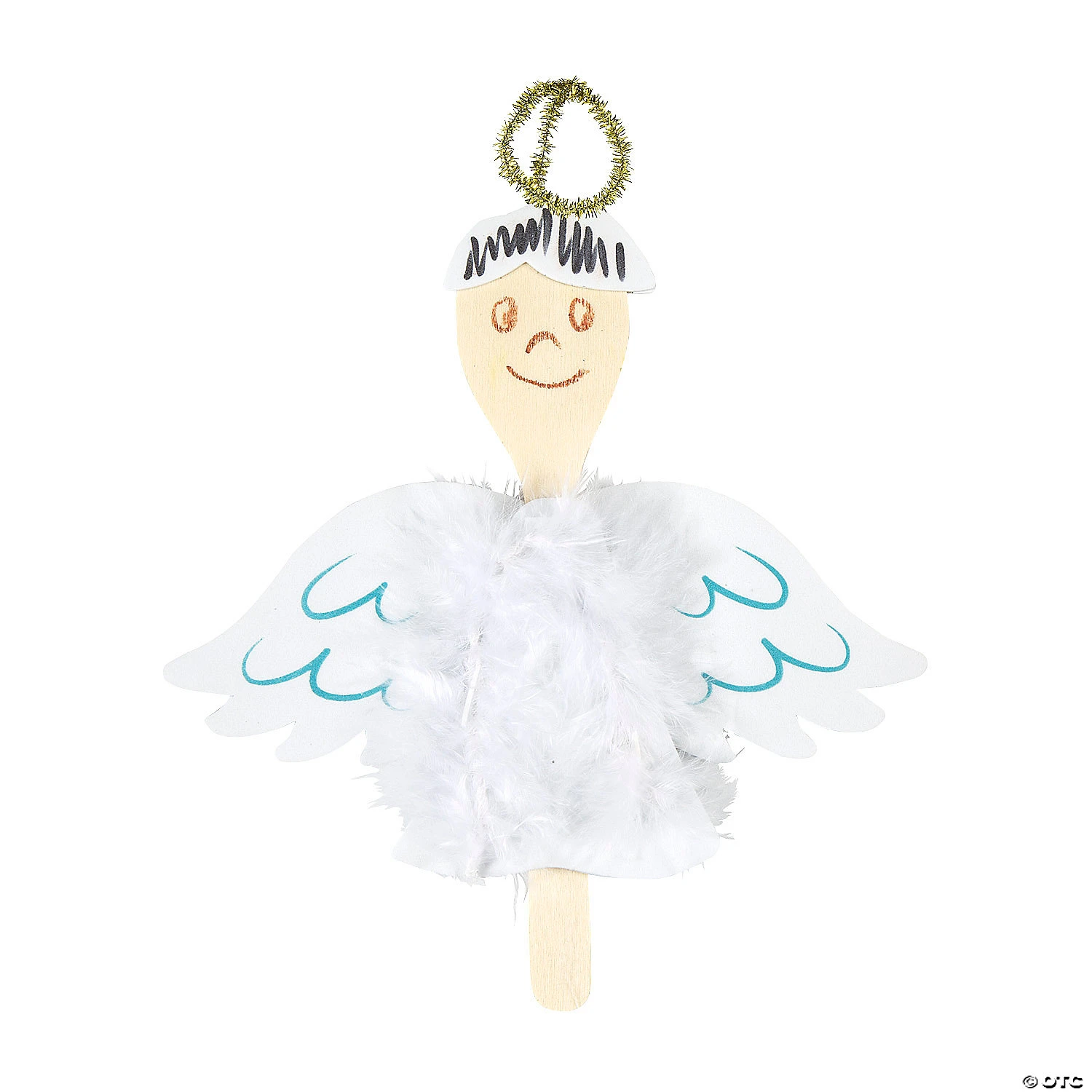 Whether on the Christmas tree or part of a Nativity scene, angels are a favorite for the holidays. This charming angel can be created with the included craft supplies. At holiday events or as part of a school art class, kids will enjoy this craft activity and be happy to take it home to show their family. Includes self-adhesive foam pieces, marabou feathers, chenille stems and wooden spoons. 7 3/4″ x 8″ Makes 12. All craft kit pieces are pre-packaged for individual use. Kits include instructions. Β© OTCAngel Spoon Instructions