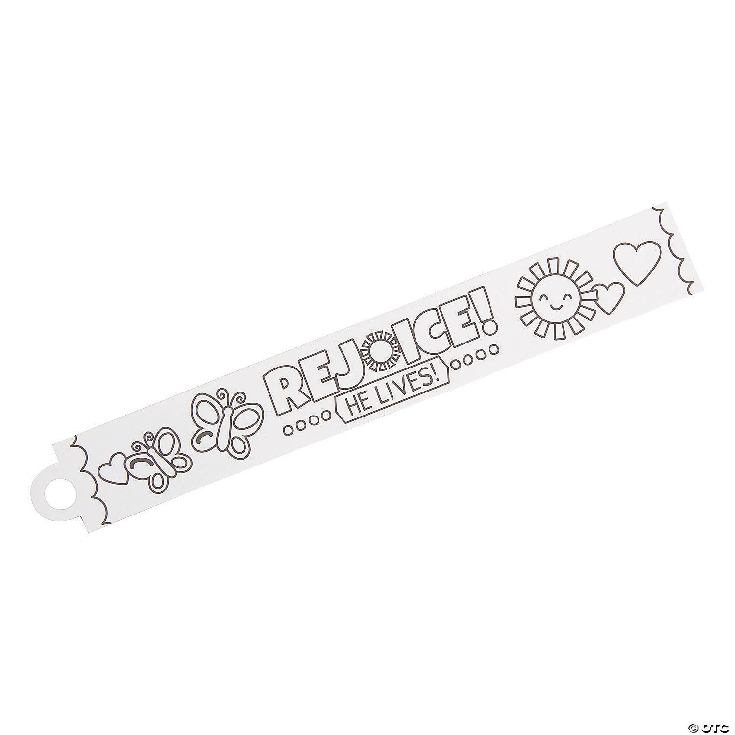 This spring prepare for coloring fun for little ones! A cute addition to religious Easter crafts for kids, these bracelets feature text that reads “He Lives!” with a smiling sun, hearts and butterflies. They’ll delight in bringing this happy design to life then wearing them to show off their love for Him as well as their creativity! Includes adhesive tab. Cardstock. (96 pcs. per unit) 9″ © OTC