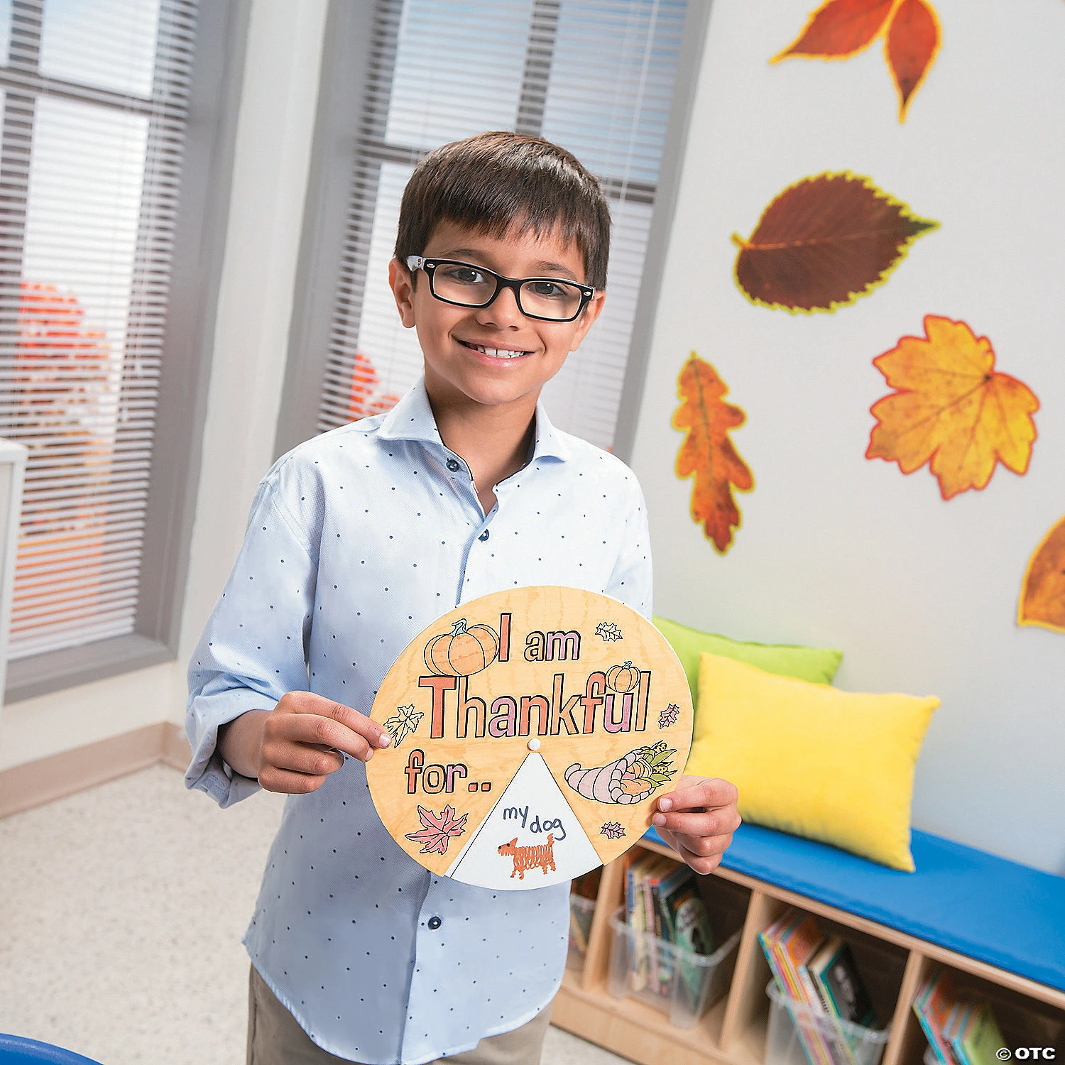 Wonderful school art projects that show students the meaning of Thanksgiving while celebrating the holiday, these classroom supplies are also ideal for Sunday School and for the kiddie craft table during your family celebration. Encourage children to reflect on all the things that make their lives a joy. Includes 6 areas to draw or write what kids are thankful for. Includes metal brads. Paper. 9″ diam. Β© OTC