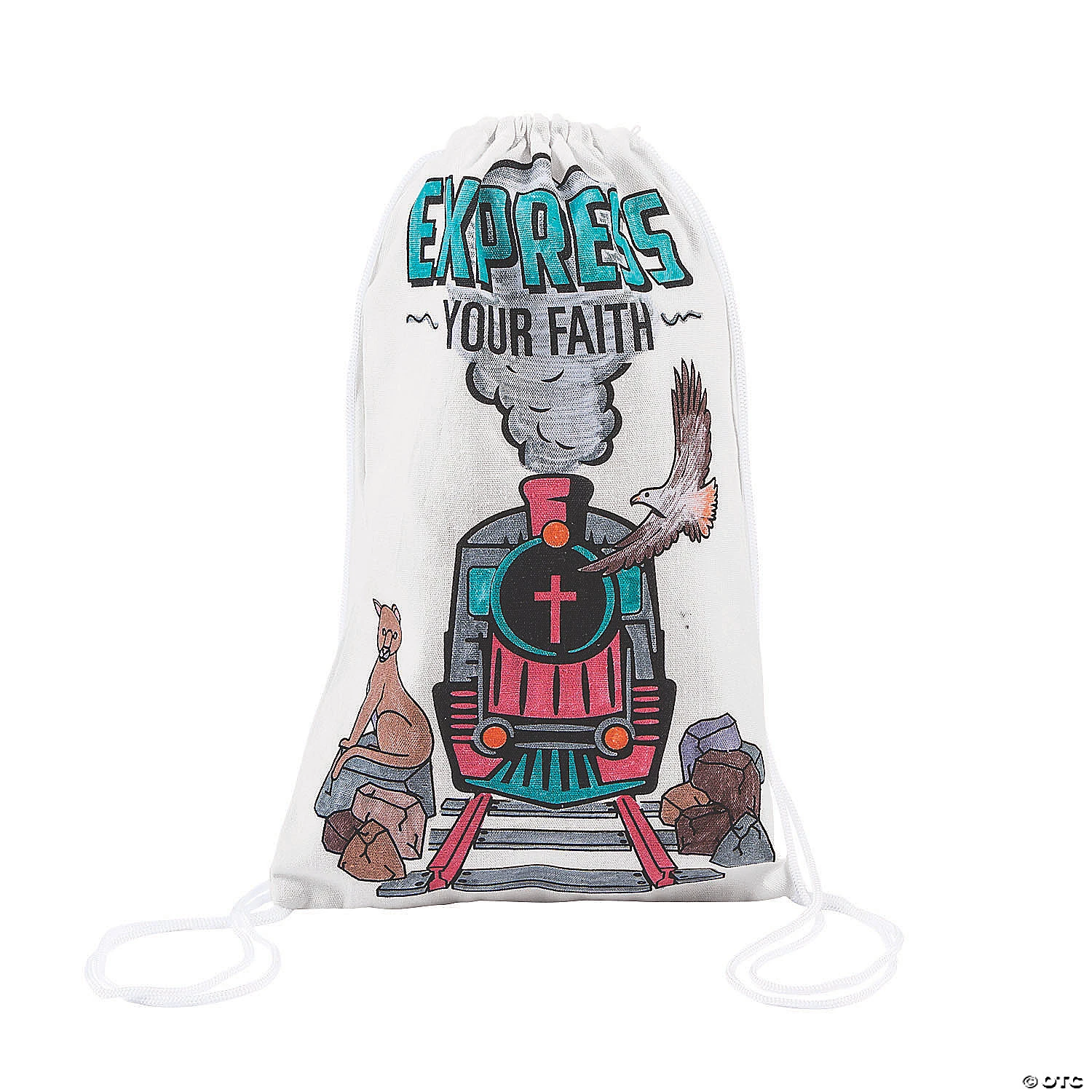 Buy β€οΈ Color Your Own Railroad VBS Medium Drawstring Bags – 12 Pc. π