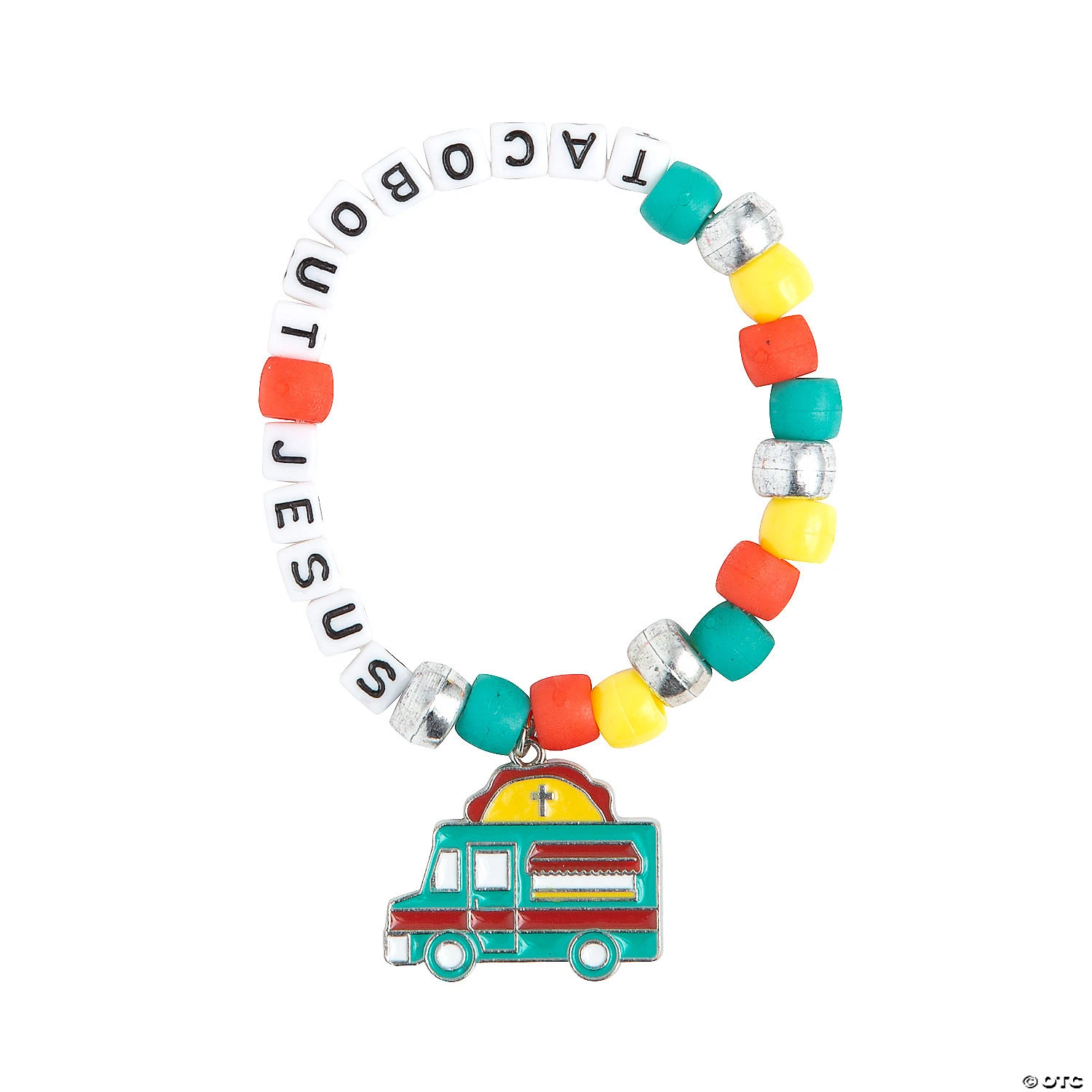 Taco ‘bout Jesus! Sunday School or VBS Kids will love making their own beaded bracelet with help from this fun and simple craft kit! With no jewelry-making tools required, this fun craft kit has enough supplies for up to a dozen kids to make their own Food Truck VBS bracelet complete with colorful beads. Includes 1/4″ plastic pony beads, 1″ enamel charms and 14″ stretchy cording. Makes 12. All craft kit pieces are pre-packaged for individual use. Kits include instructions. © OTCFood Truck Pony Bracelet Instructions