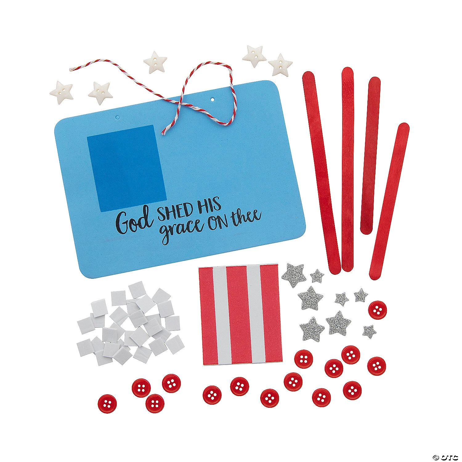 Sunday School kids will love creating their own patriotic sign featuring faith messaging β and lots of buttons! β with this simple and fun craft kit. Each craft kit is pre-packaged for each kid and no additional supplies are needed, making this the perfect Fourth of July craft activity for Sunday School or at a patriotic party. Includes self-adhesive foam pieces, plastic buttons, baker’s twine and wooden craft sticks. 7″ x 5″ Makes 12. All craft kit pieces are pre-packaged for individual use. Kits include instructions. © OTCGod Shed His Grace on Thee Button Instructions