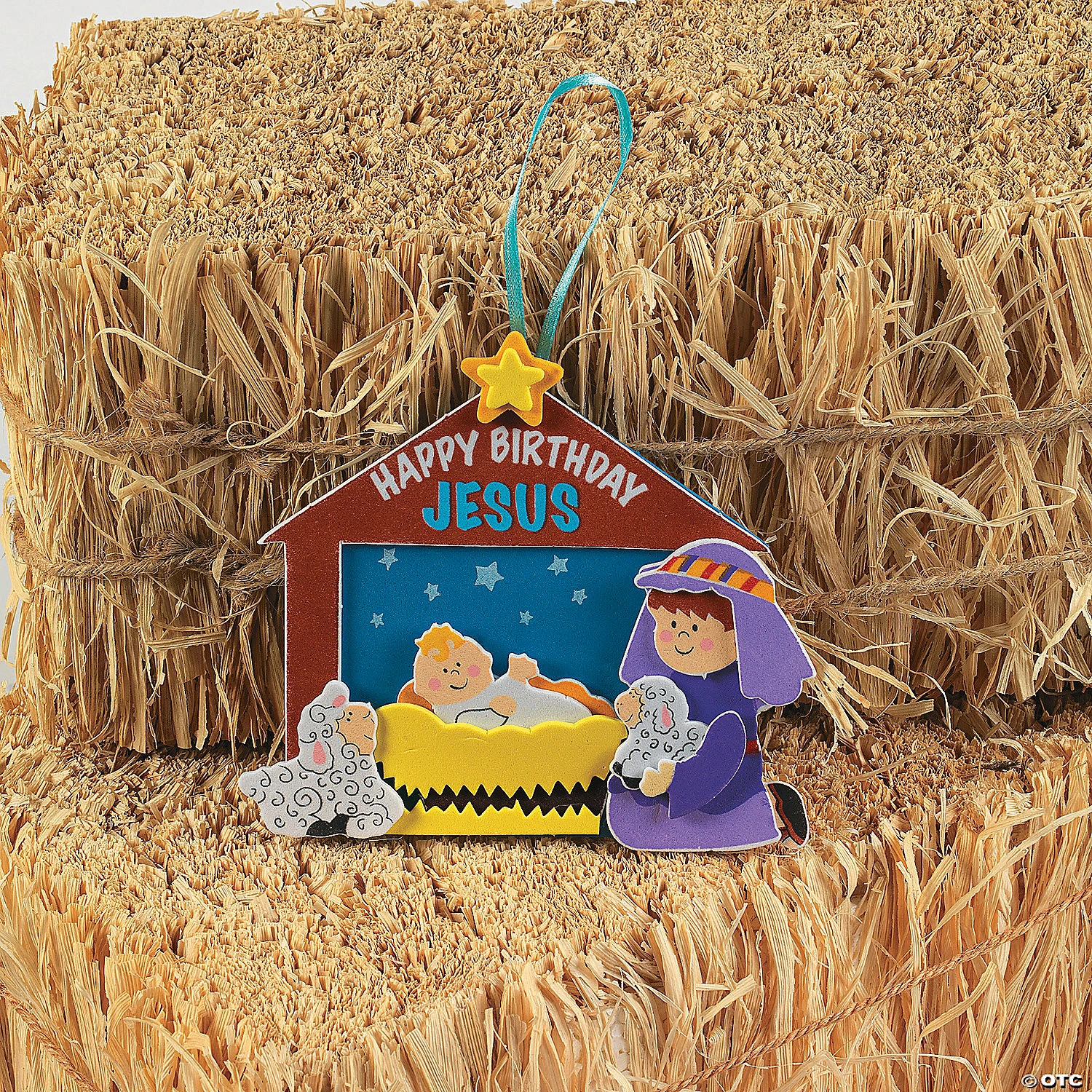 Celebrate His birth with this religious craft for kids. These βHappy Birthday Jesusβ Christmas Ornament are an inspirational crafts for Sunday School classes to learn about Jesus during Christmastime. Self-adhesive foam. 5 1/2″ All craft kit pieces are pre-packaged for individual use. Kits include instructions and extra pieces. Β© OTC