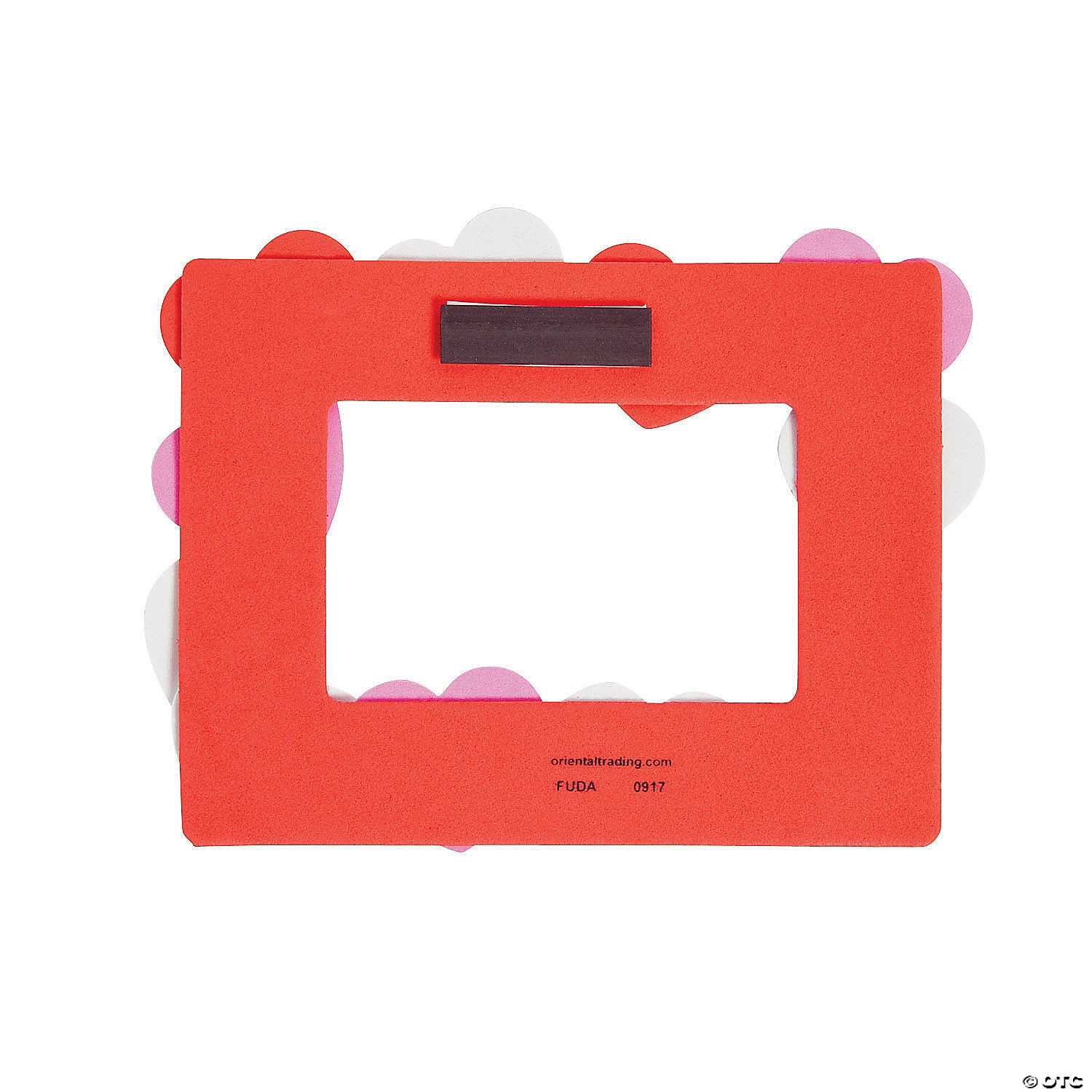 Heart Picture Frame Magnet Craft Kit. Show off who you love with this Heart Picture Frame Craft Kit that’s perfect for Valentine’s Day. A delightful all-ages activity, this 6 1/2″ x 5″ Heart Picture Frame Craft Kit includes self-adhesive foam pieces for simple construction. With eye-catching heart patterns and a self-adhesive magnet, the 4 1/4″ x 2 1/2″ photo that fits into the frame can be hung on any metal surface for all to see! Use your own glue for extra reinforcement. All craft kit pieces are pre-packaged for individual use. Magnets are packaged separately. Do not discard. Kits include instructions and extra pieces. © OTC
