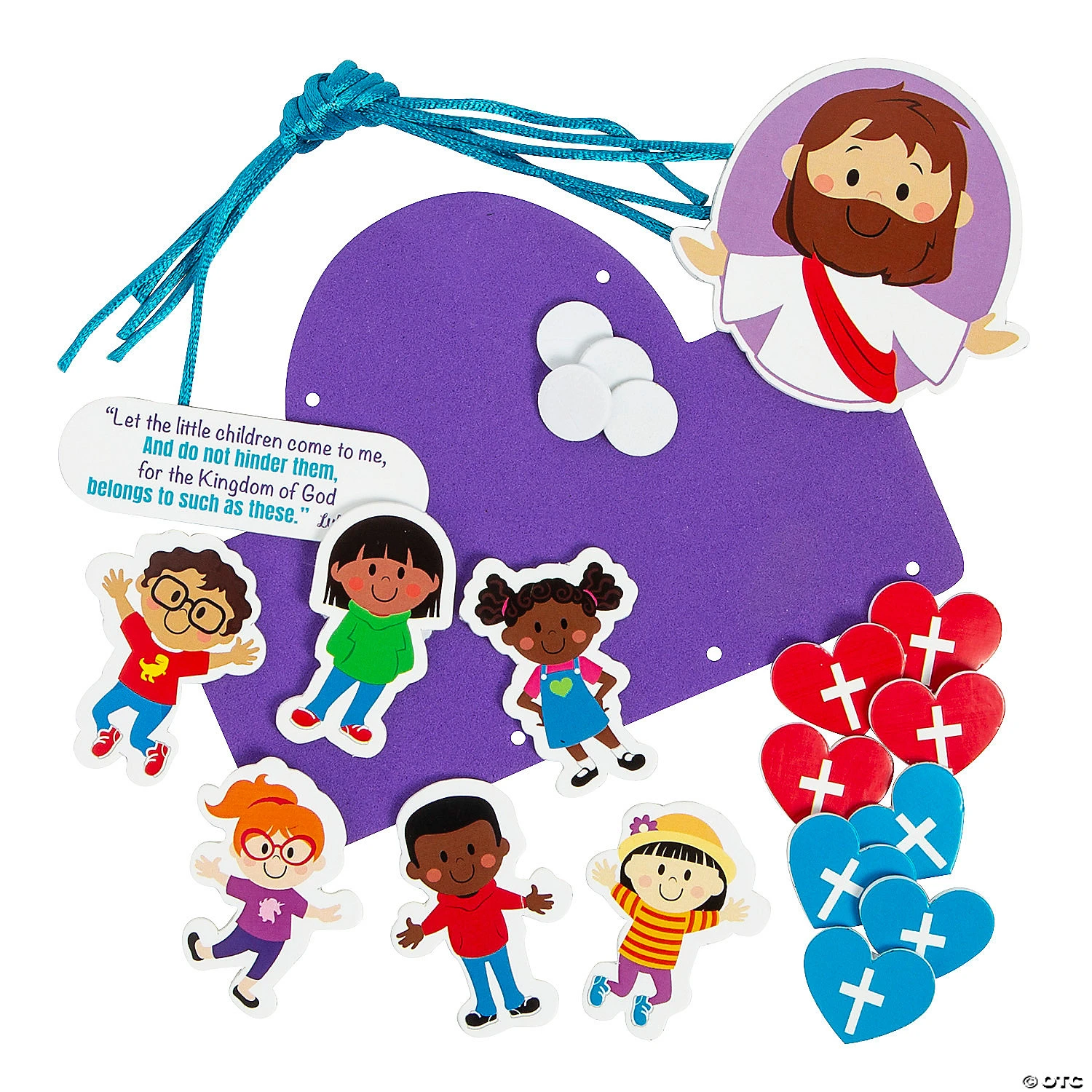 Help Sunday School or VBS kids learn that Jesus loves them with this colorful mobile craft kit. Featuring Luke 18:16 and smiling images of Christ and happy kids, this simple craft kit creates lovely mobiles that kids can proudly display at home to remind them of the lessons they learned at church. Includes self-adhesive foam pieces and satin cording. 6″ x 4 1/2″ Makes 12. All craft kit pieces are pre-packaged for individual use. Kits include instructions. Β© OTCJesus & the Children Mobile Craft Kit Instructions