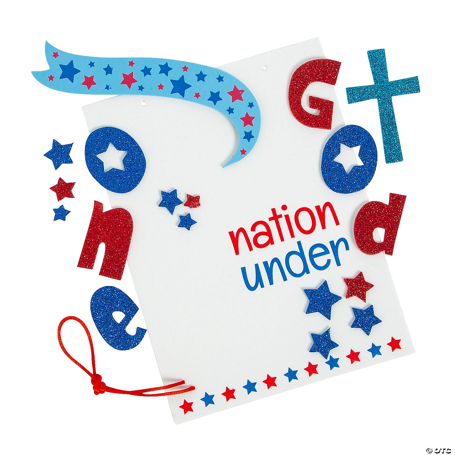 Help Sunday School kids learn about the importance of love for their country and for God with this religious patriotic craft kit. The completed craft is a sign with the message βOne nation under Godβ with plenty of patriotic red, white and blue elements. Kids will be proud to display this sign to show off their patriotism and faith. Includes self-adhesive foam pieces and satin cording. 6″ x 8″ Makes 12. All craft kit pieces are pre-packaged for individual use. Kits include instructions. © OTCOne Nation Under God Sign Craft Kit Instructions