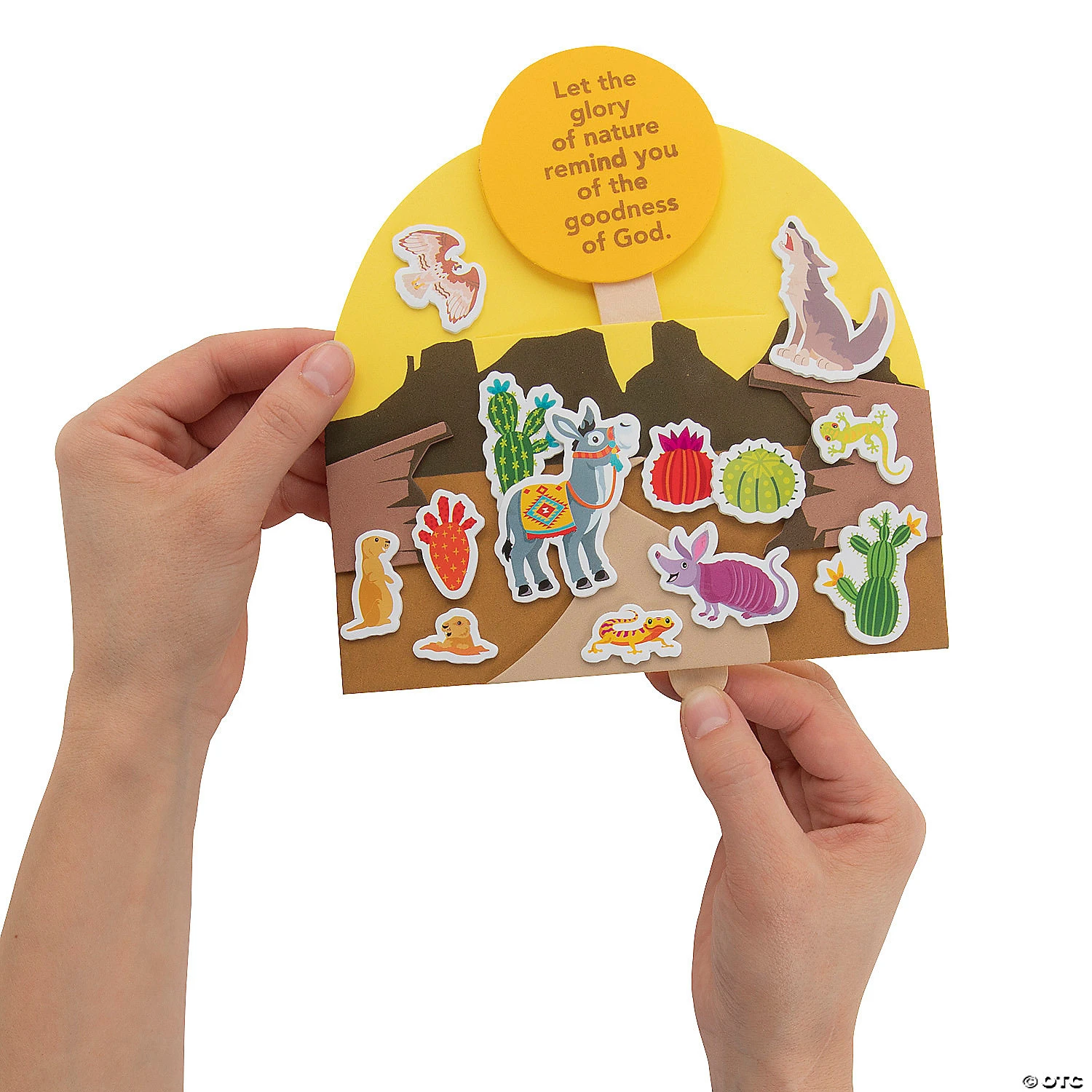 Help Sunday School kids reflect on the glory and goodness of God with this colorful craft kit that becomes an interactive pop-up kids can play with. A simple peel-and-stick craft kit that works great for Sunday School or VBS, this craft has happy desert characters and faith-filled messaging that celebrates the goodness of God. Includes self-adhesive foam pieces and wooden craft sticks. 7″ x 6 1/2″ Makes 12. All craft kit pieces are pre-packaged for individual use. Kits include instructions. © OTCGod is Surprising Pop-Up Instructions