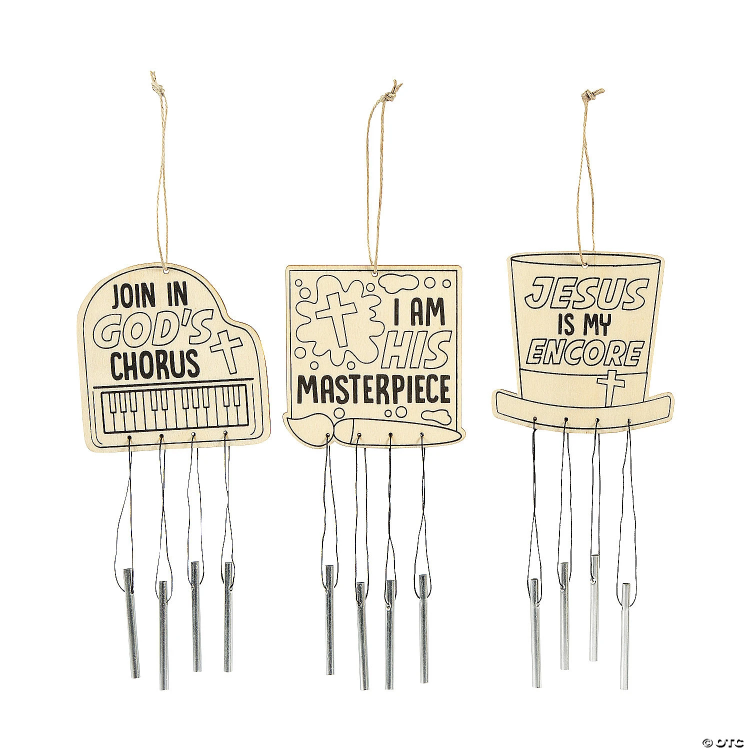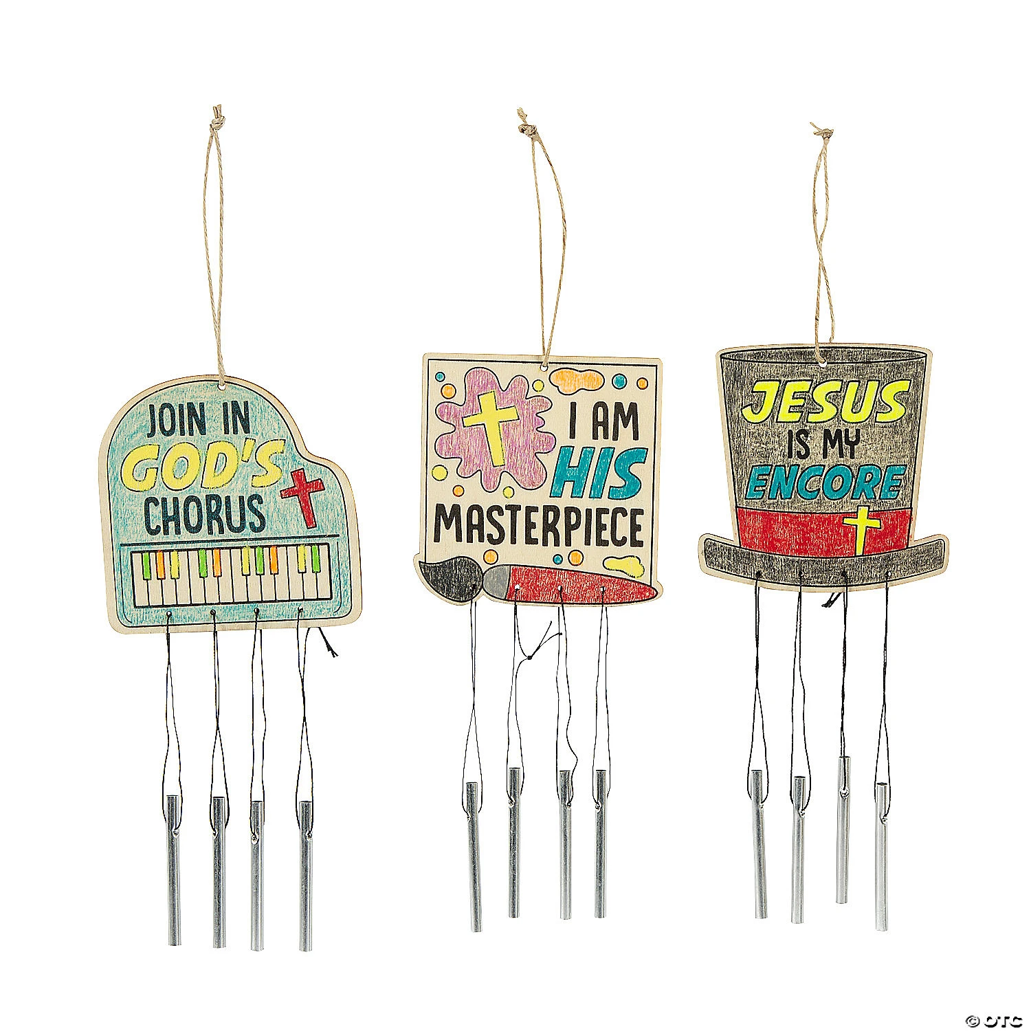 Help Studio VBS kids join in God’s chorus with these cute wind chimes. Ready for coloring and featuring Studio VBS imaging and messaging, these wind chimes are a fun and simple craft activity kids will enjoy. Craft team leaders will appreciate the ease of helping kids complete these wind chimes and will enjoy the easy cleanup afterward. Wood with metal chimes. 3 1/2″ x 12 1/2″ © OTC